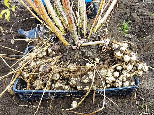 ●土をつけたまま冷蔵・・・表面を水洗いしてしまうと日持ちが悪くなります。 ●乾燥させて保存・・・・・スライサー等でスライスし、水にさらし(3分)、それをザル等に広げて天日干し(2~3日)をします。十分乾燥したら、密封し冷暗所で保存します。