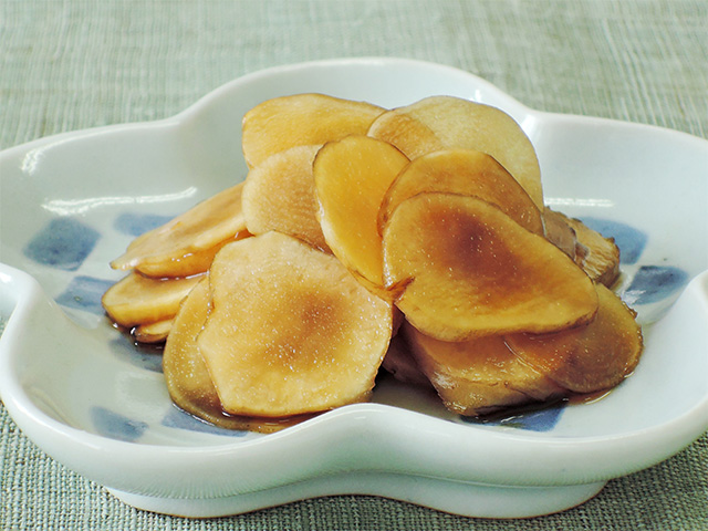 菊芋の調理で最も有名なのは、山形名物“おみ漬”です。 おみ漬は、最上川舟運時代に「三方よし」の商いをする近江商人が「もったいない」精神から考案したと言われています。 飽食の時代、今でこそ菊芋は雑草のように扱われていますが、米沢藩主・上杉鷹山が「かてもの」において、身近なものを資源とし、危機に備える精神を示したように、この地域には山野草を食べる食文化が今でも残っています。 「草木塔」に見られるように、草や木に対してさえ、自然に対する畏敬と優しさが残るこの土地で、完全無農薬、無化学肥料で育てられた菊芋は、目立たないけれど働き者の長井の新たな特産物です。